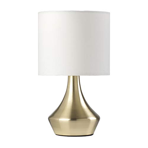 ONLI bord guld gjord av satinerad metall och lampskärm av vitt tyg, 6 W