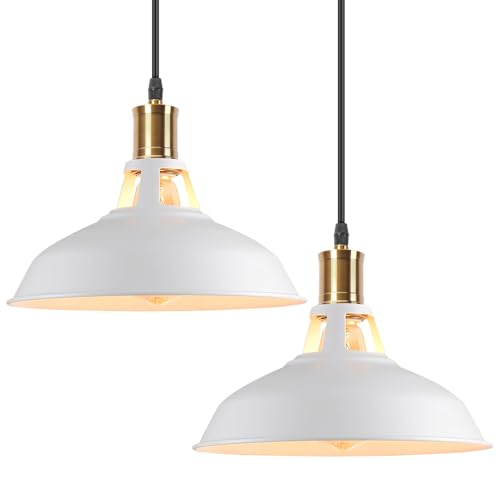 iDEGU 2 x vintage industriell pendellampa retro stil metall hängande lampskärm för restaurang bar kafé matsal kök, 27 cm, vit