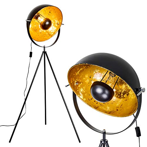 Home sweet home collection vardagsrumslampa i svart och guld, stativ golvlampa, E27 sockel, retro golvlampa, 160 cm, vridbar lampskärm metall | för kontorsrum