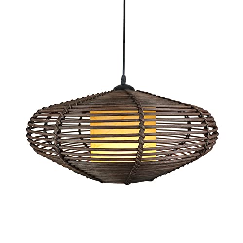 SHUANGZ Naturlig bambu och rotting vävd ljuskrona bondgård vävd flätad 45 cm lampskärm retro stil E26 pendellampa för hall entré kök ö matsal sovrum