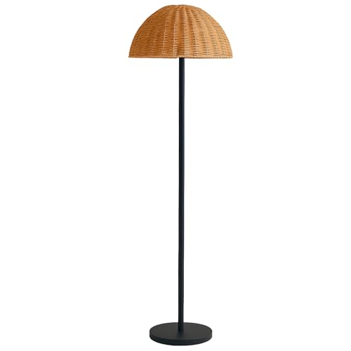 Golvlampa trä boho 2 lampskärm rotting bondgård golvlampa med på/av indenpental brytare, golvlampa vardagsrum höga golvlampor för sovrum kontor (utan glödlampor)