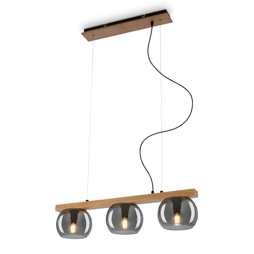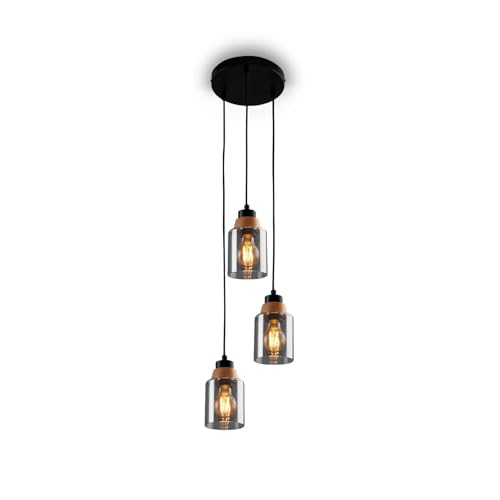 BRILONER – 3 ljuskällor, pendellampa, rökglas, taklampa, lampa, vardagsrum, lampskärm av rökglas, hängande lampa, ljuskrona, sovrum, svart-trä