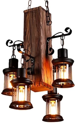RibasuBB 4 heads retro industriell pendellampa ljuskrona retro industri järn taklampa justerbar höjd E27 trä järn glas lampskärm pendellampa restaurang café dekoration