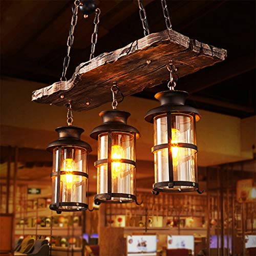 Vintage pendellampa E27, industriell ljuskrona, vintage, trä, pendellampa, svart järn och glas, lampskärm, höjdjusterbar, hängande lampa, 3 lågor, belysning, loft, matrum, vardagsrum, bardekoration, dekoration, lampa
