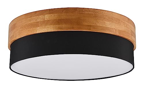 Trio Leuchten Taklampa Seasons 611500302, naturligt trä, lampskärm tyg svart, exkl. 3 x E27