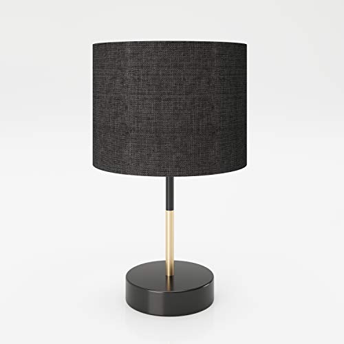 PLAYBOY Designer-bordslampa med svart lampskärm i tyg, lämplig som bords- eller dekorationslampa, sänglampa, skrivbordslampa, retrodesign, svart med träelement
