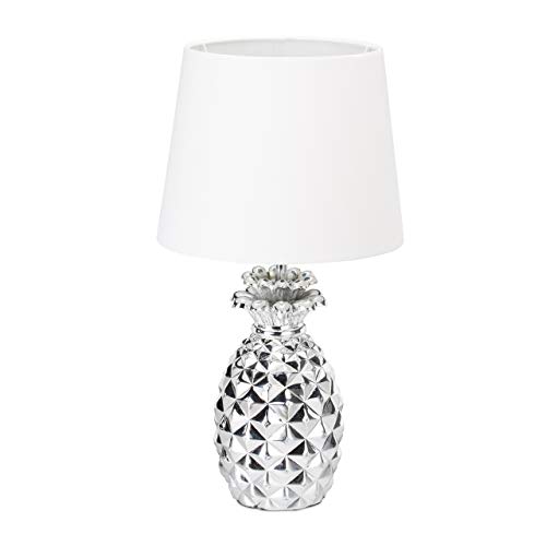 Relaxdays Bord ananas, med strömkabel, lampskärm av tyg, originell, deco lampa, H x Ø: 47 x 25 cm, silvervit, vit-silver