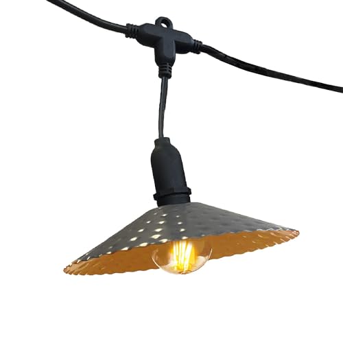 Utomhus ljusslinga 10 lampskärm stål vintage stil Mini VINTY LIGHT HYBRID LED varm vit 6 m sol och nätverk