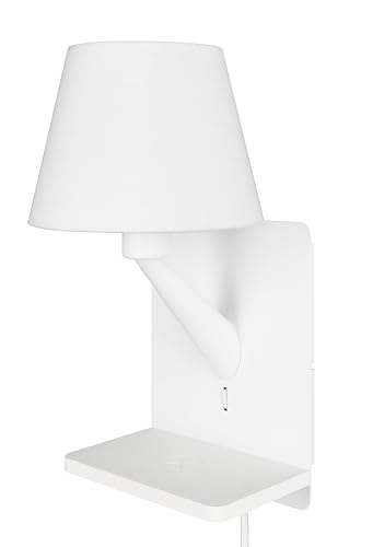 Trio Leuchten COMFORT vägglampa 262670131, matt vit metall, vit lampskärm, induktivt laddningsfält, USB-laddningsstöd