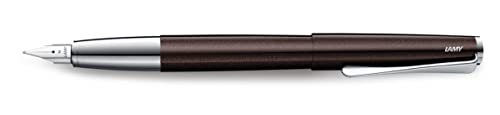 Lamy Studio mörkbrun reservoarpenna – universell reservoarpenna i elegant helmetallhus – 14 karat guldspets, delvis platinapläterad och i linjebredd EF – inkluderar T 10 blå bläckpatron
