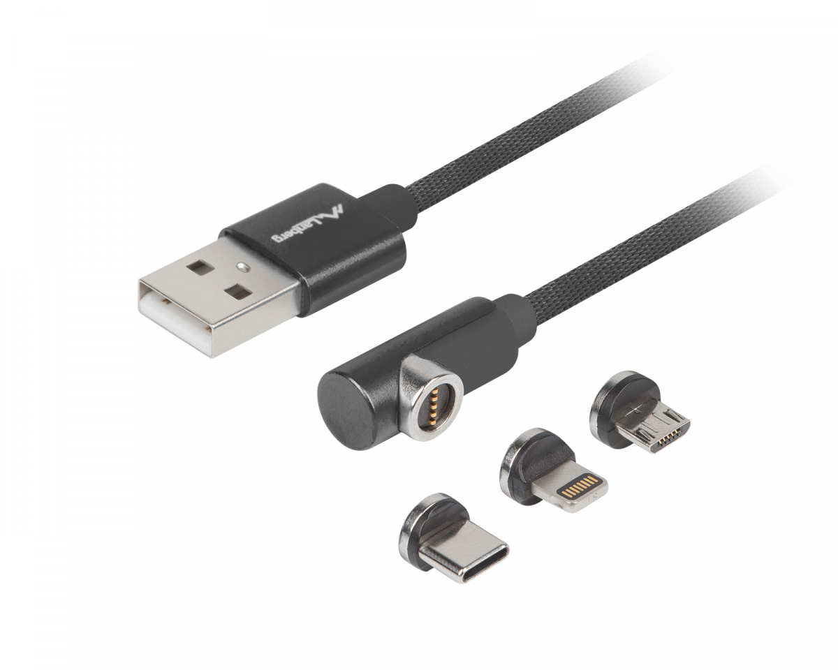 Lanberg 3in1 Premium Magnetisk Kabel Vinklad QC 3.0 - Svart