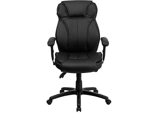 Flash Furniture HERCULES serien stor och högt rankad verkställande svängbar stol med säte och justerbar ländrygg, metall, svart läder/nät, 80,01 x 73,03 x 41,91 cm