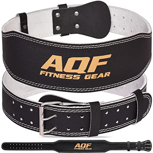AQF 4" Läder Vikt Lyftning Bälte Vadderad Ländrygg Rygg Stöd Med Mocka Foder Och Stålrulle Spänne Konturerad Fitness Träning Bodybuilding