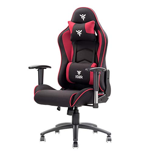 ITEK PLAYCOM FM20 Gaming ergon stol röd vilstol ryggstöd justerbart armstöd och nackstöd, sup, ländrygg, komfort och design, perfekt som kontorsstol, studiostol eller spelstol
