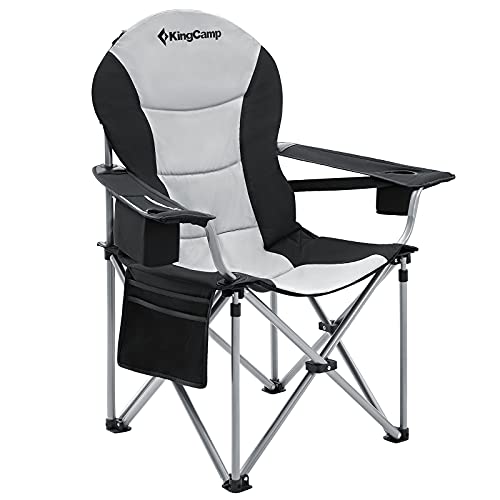 KingCamp XL Slitstark campingstol för stora personer med ländryggsstöd, 158 kg, campingstolar med hög rygg för vuxna med kylväska och armstöd för utomhusbruk, trädgård och picknick