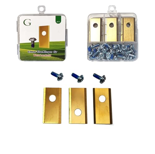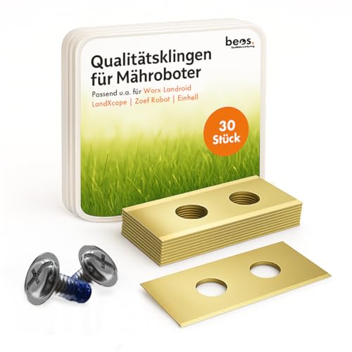 BEOS® 30 x premium ersättningsblad i titan + skruvar med säkring – ersättningsblad för premiummärken Worx, LandXcape, Zoef robot, Einhell kress – 0,9 mm bladtjocklek för lång gräsklippare njutning –