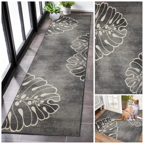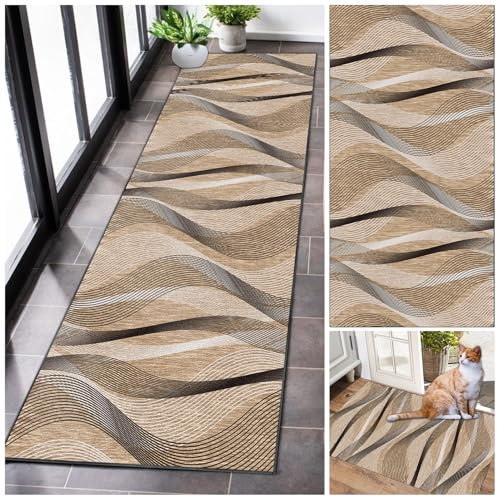Enyhom Lång matta, 66 x 300 cm halkfri hallmatta, dörrmatta, tvättbar, badrumsmatta, fläckbeständig, kök, golvmatta, matta för badrum, entré, sovrum, trappa