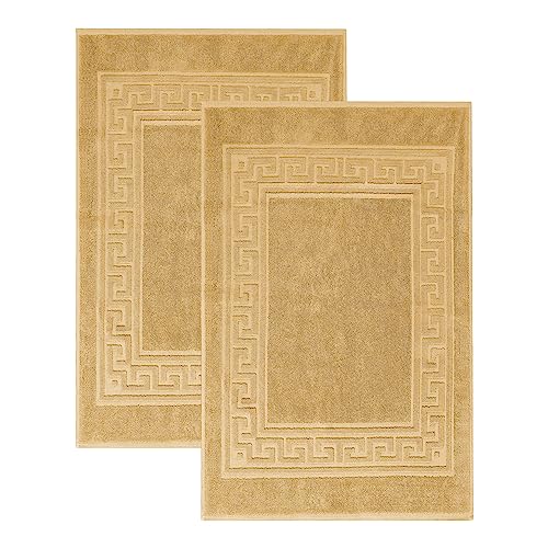 Superior Hotell & Spa kvalitet badmatta uppsättning av 2, tillverkad lång klammer kammad bomull, hållbar och tvättbar badrumsmatta 2-pack - guld, 55 cm x 89 cm vardera