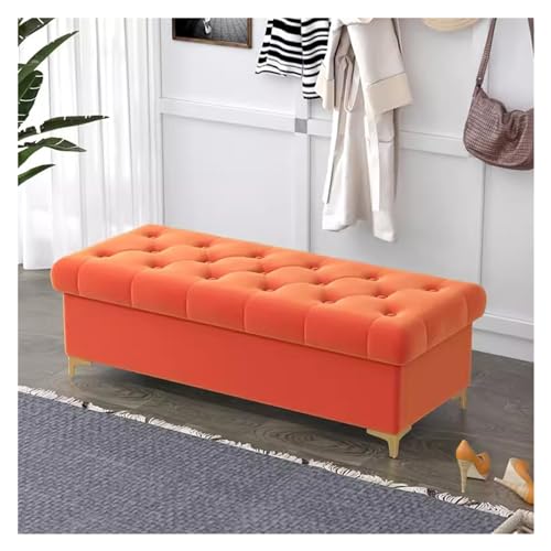 WHDMKUS Sammet förvaringsbänk lång ände av sängen ottoman bänkar för sovrum, stoppad rektangel accentbänk entré fönster bänk fotpall med metallben (färg: Orange, storlek: 120 cm)