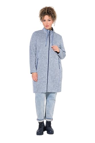 Ulla Popken dam stickad fleecejacka, ståkrage, lång, dragkedja fickor sweatshirt, Himmelsblå, 50