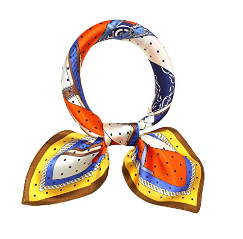 ANDANTINO 100% mullbärssilke, lång halsduk för kvinnor, stora sjalar för huvudscarf och hals, avlånga hårsjalar med presentförpackad, Bälten-orange-gråaktig blå, Medium