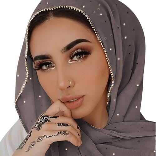 ANKOMINA Dam mjuk chiffong strass lång halsduk sjal mode muslimsk hijab huvudsjal halsdukar, Grå, one size