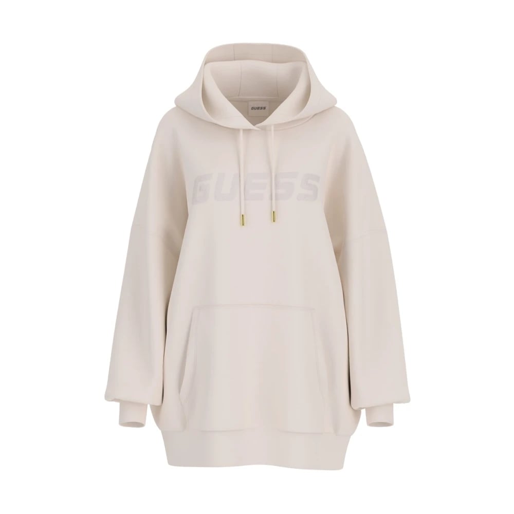 Guess, Sweatshirts & Hoodies , Dam, XS, Bomull, Lång Maxi Dam Hoodie i Vit