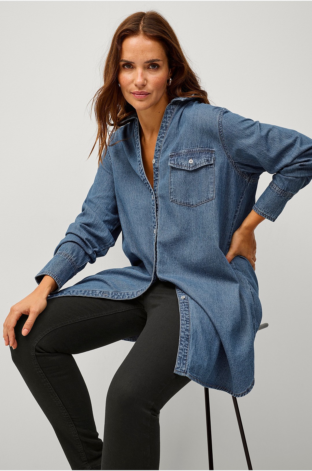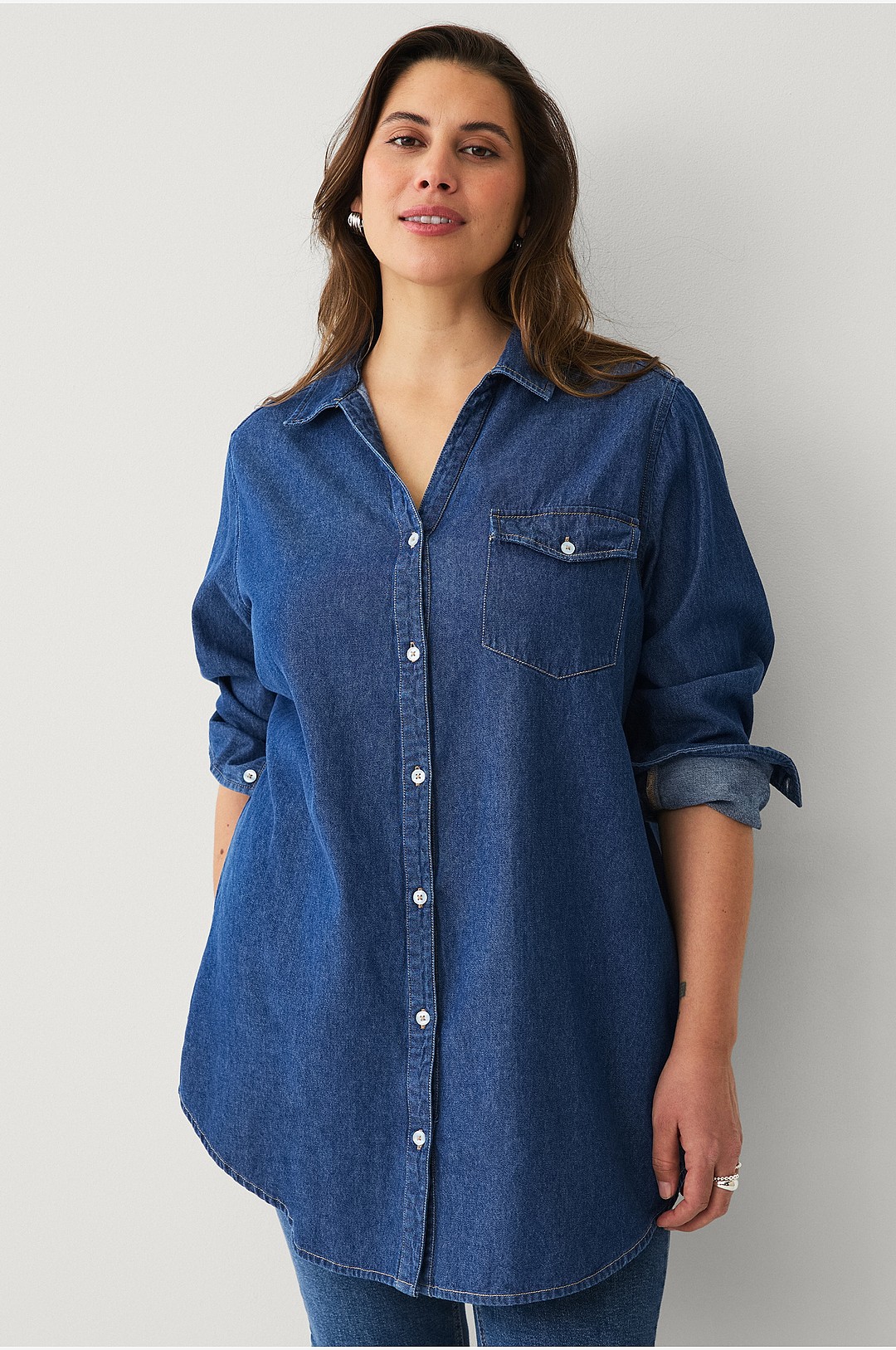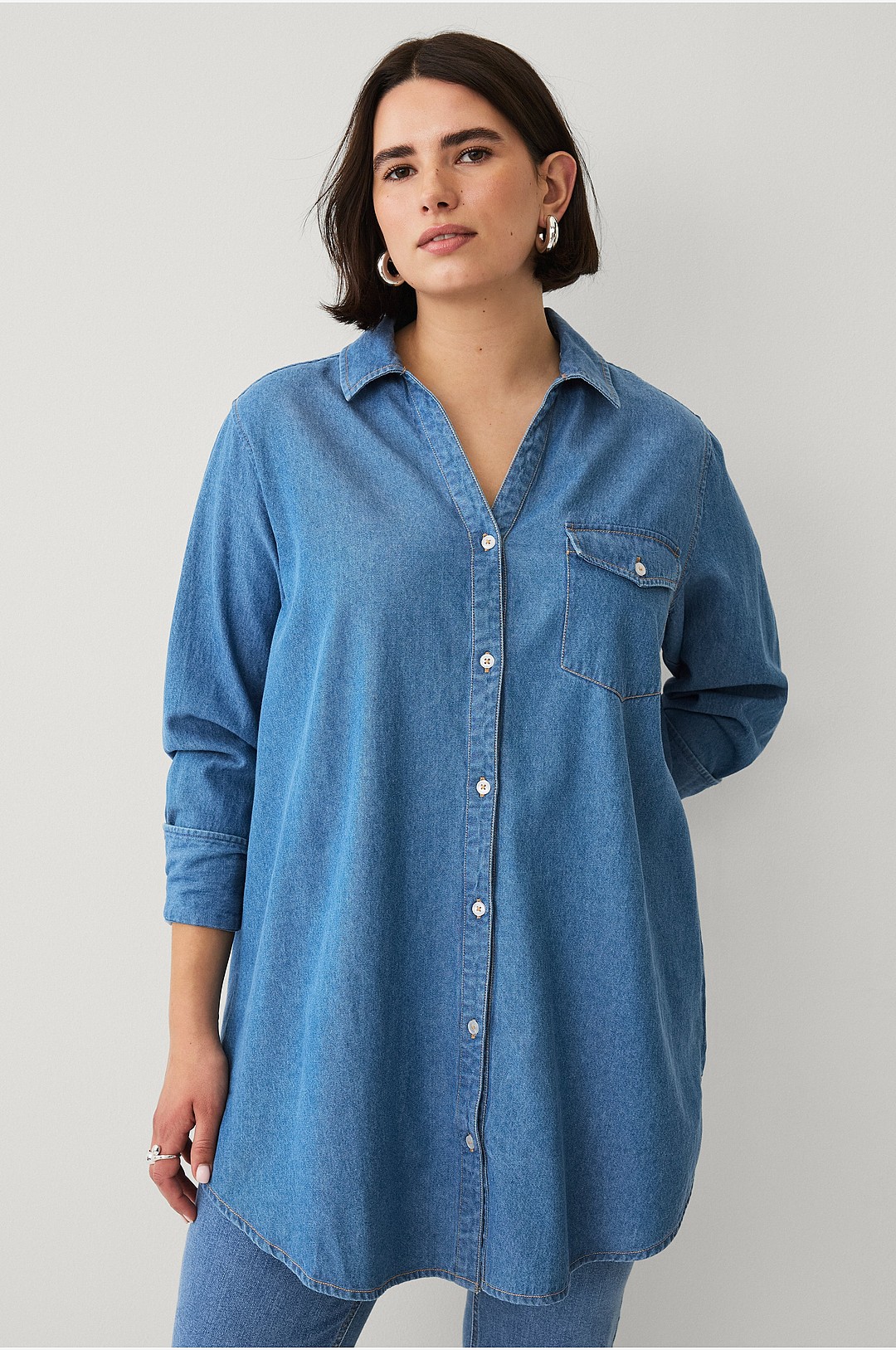Ellos Plus collection - Lång jeansskjorta - Blå