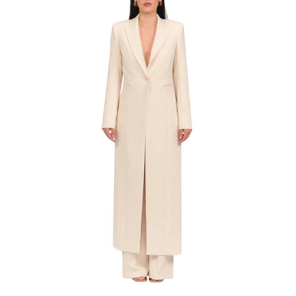 Patrizia Pepe, Kappor & Rockar , Dam, S, Polyester, Enkelknäppt Lång Kappa
