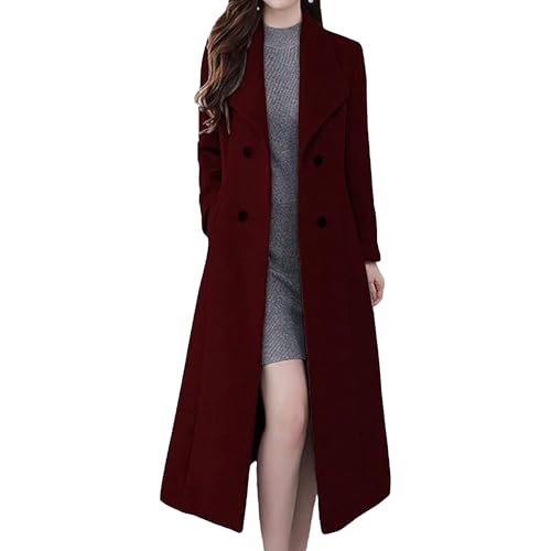 CMTOP Lång kappa för kvinnor, vinter, dubbelknäppt ullrockar, förtjockad trenchcoat, chic och elegant Nizi-kavaj, klassisk enfärgad, Färg: grå, M