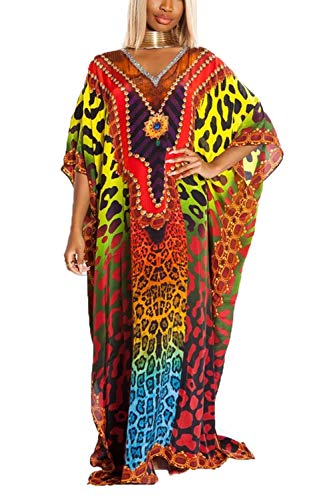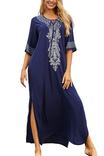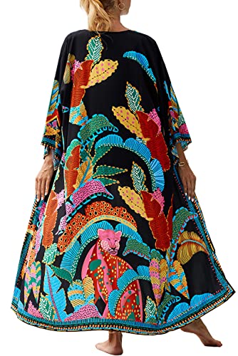 LikeJump Dam, bomull, bohemisk kaftan, överdimensionerad strandklänning, lång klänning, kimono-baddräkt, cover-up-klänning, Flerfärgad 2, En Storlek