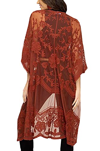 YouKD Spets cardigan för kvinnor, genomskinlig klänning, bohostil, lång kimono, strandbaddräkt, dra över klänningar, Röd, en storlek