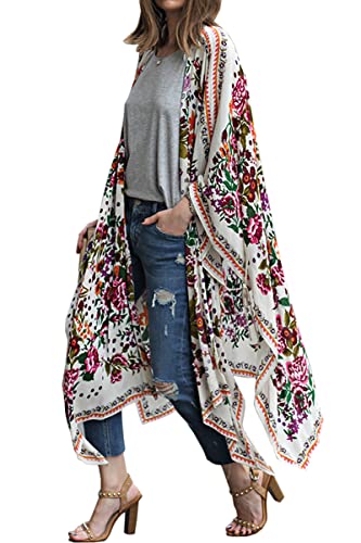 MIXIDON Bikini-cover up, maxi-strandklänning bohemisk lång lätt kimono, strandkofta, Vit, XL