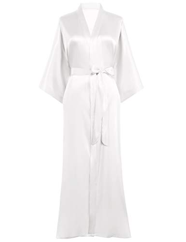 Prodesign Morgonrock, dambadrock, satin, kimono, lång med bälte, enfärgad, nattkläder, lätt sovrock, Vit, one size