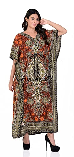 Art Of Creation Lång kaftan, kimono, klänningar i maxistil för kvinnor, normal till plusstorlek, täckande, Orange, en storlek