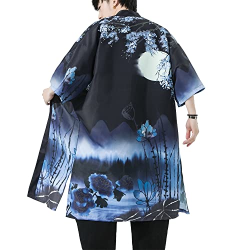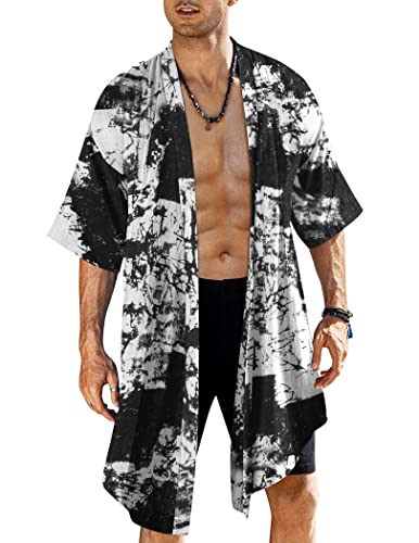 COOFANDY Herr volang sjal krage lätt cardigan lång kimono jackor öppen framsida kappa kappa kappa, Svart (batiktryck), Small