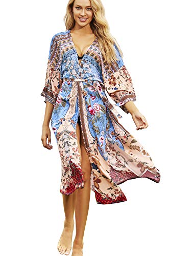 YouKD Bohemisk kofta för kvinnor, maxiklänning, strand, döljande klänning, lång kimono, en storlek, En Storlek