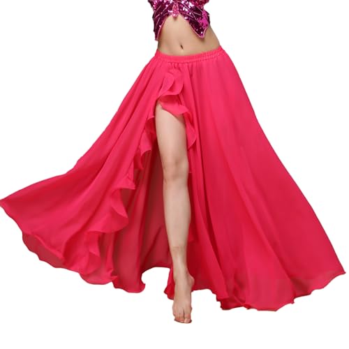 Baisdan chiffong sliten kjolar magdans festival kläder lång gunga kjol kostym för nybörjare Ros rosa En storlek