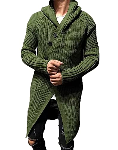 Herr mörk enfärgad lång cardigan kappa kappa tröja jacka män pullover huvtröjor, gRÖN, XL