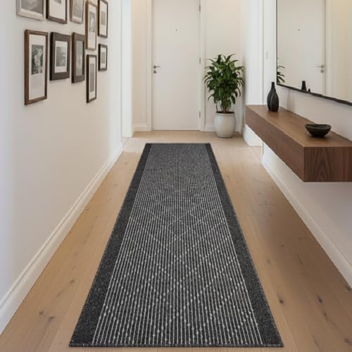 ZUZEKU Löpare, matta, lång, hall, kök, halkfri, tvättbar, korridor, mattor, 110 x 500 cm, köksmatta, kökslöpare, mörkgrå, löpare, entré, sovrum, metervara, vardagsrum, halllöpare