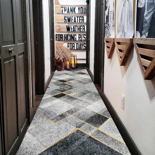 ZDYHMrj Löpare, matta, lång hall, halkfri, tvättbar, 120 x 450 cm, kök, korridor, matta, löpare för hall, grå, sovrum, vardagsrum, polyester, matta, hållbar, justerbar köksmatta, metervara