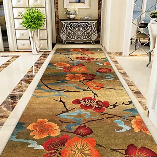 Löpare matta hall 3D blommor tryckt med låg lugg halkskydd smutsbeständig traditionell lång hall matta löpare mattor F, 100 x 500 cm