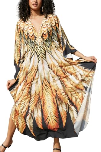 YouKD Lång kaftan, maxiklänning, boho, baddräkt, strand, täckande rock, en storlek, loungewear, En Storlek