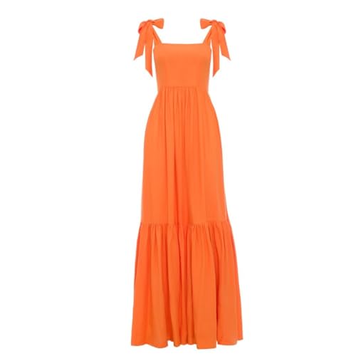 Swing Fashion orange lång maxiklänning Dreamy med rosetter på remmarna | Storlek XS/S, apelsin, S