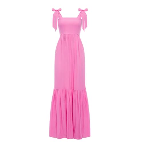 Swing Fashion rosa lång maxiklänning Dreamy med rosetter på remmarna | Storlek XS/S, ROSA, S