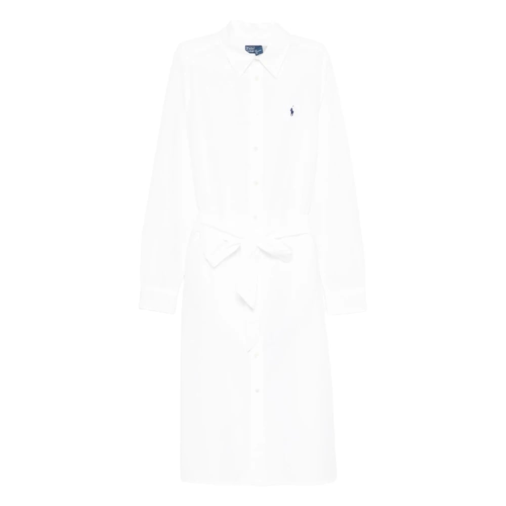 Polo Ralph Lauren, Klänningar , Dam, S, Bomull, Lång Poplinskjortklänning med Broderad Logotyp