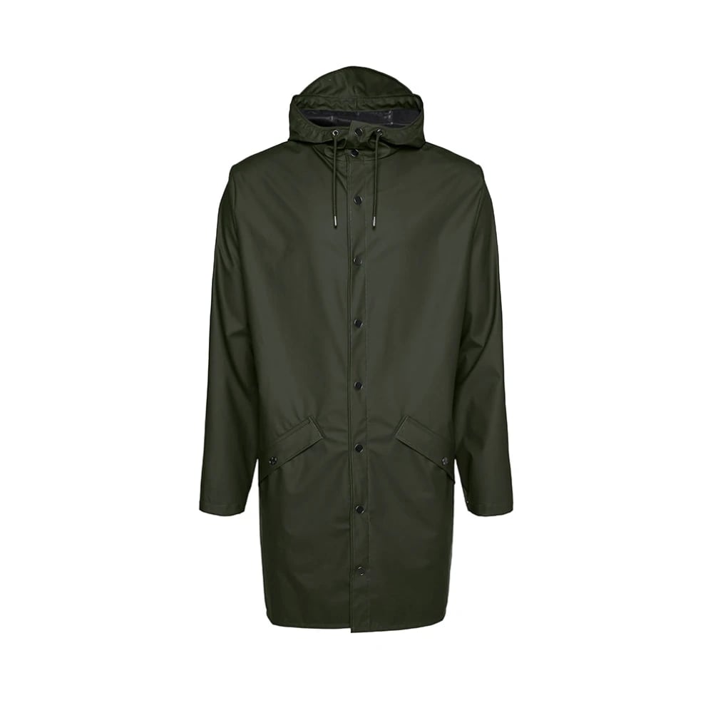 Rains, Jackor , Herr, S, Polyester, Grön Lång Regnjacka med Huva