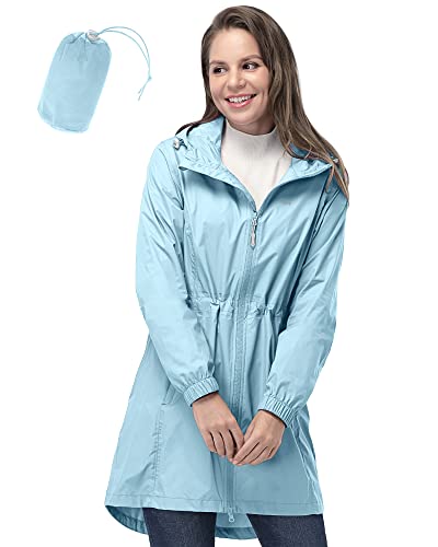 Anyoo Regnrock Dam Vattentät Regnjacka Lätt Lång Vindjacka Utomhus återanvändbara Regnkläder med Huva