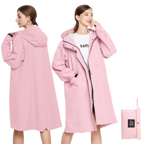 ZDJH Regnjacka för kvinnor med huva, regnrock vindtät vattentät utomhusbruk, huvtröja vattentät vindtät, lång kappa, regnparkas, vindtät regnrock, utomhusjackor, sportjackor, vindjacka, jackor,