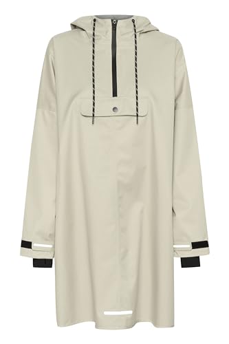 Cream Kvinnors anorak regnrock med huva med lång ärm lös passform mellan- och längdkläder, fjädergrå, Fjäder grå, S/M